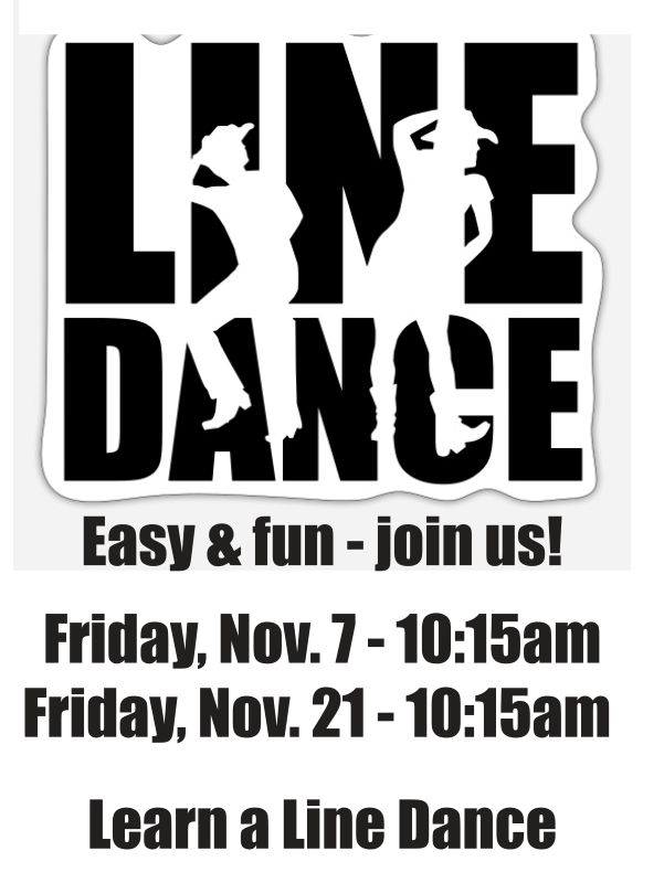 October 10, 17 & 31, 10:15am – 10:45am – POP UP Line Dance Class.