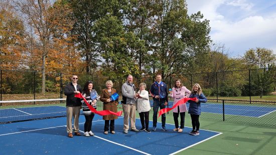 Part of the Park Board along with the Mayor and Council celebrated the opening of the pickleball courts with a ribbon cutting.