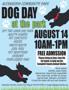 Looking for Vendors! Dog Day at Alexandria Community Park. Vendor participation is free* and will allow you to display products and services. (*Financial transactions for profit will require a one-day, temporary city occupational license $10 – unless you hold a current City of Alexandria occupational License) Vendor Registration Form